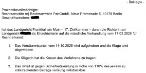 LG Frankfurt, 31.03.2026; Az. 2–17 O 110/25 – Entscheidung noch nicht rechtskräftig